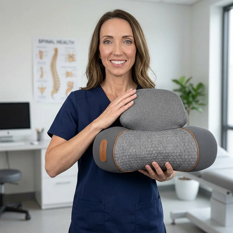 Con la Almohada CerviFlex™, combina tracción cervical, calor terapéutico y masaje por vibración. Alivio real desde la primera noche.